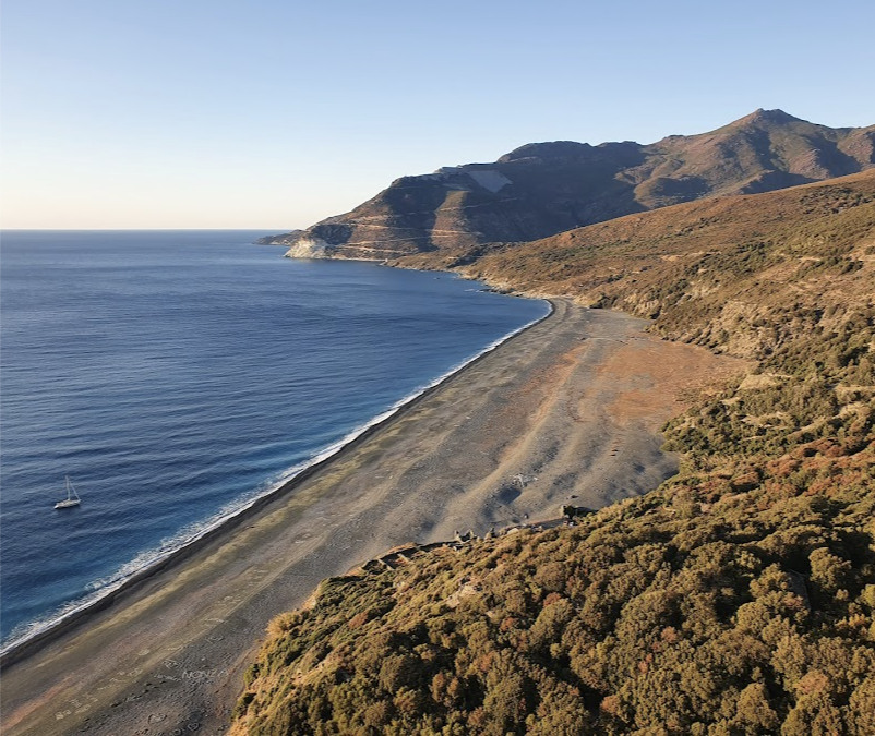 Famous for its black sand beach, Nonza offers the perfect spot for a photo break before we continue towards our accommodation: a charming inn with a pool and sea view in Patrimonio.